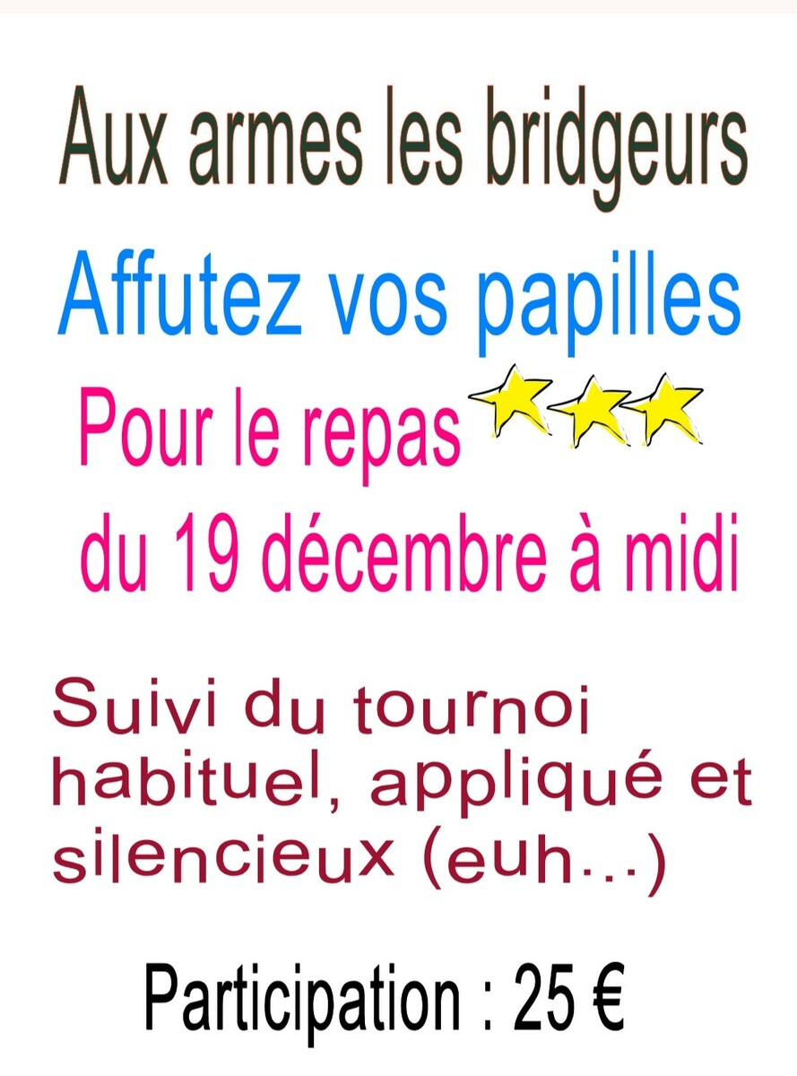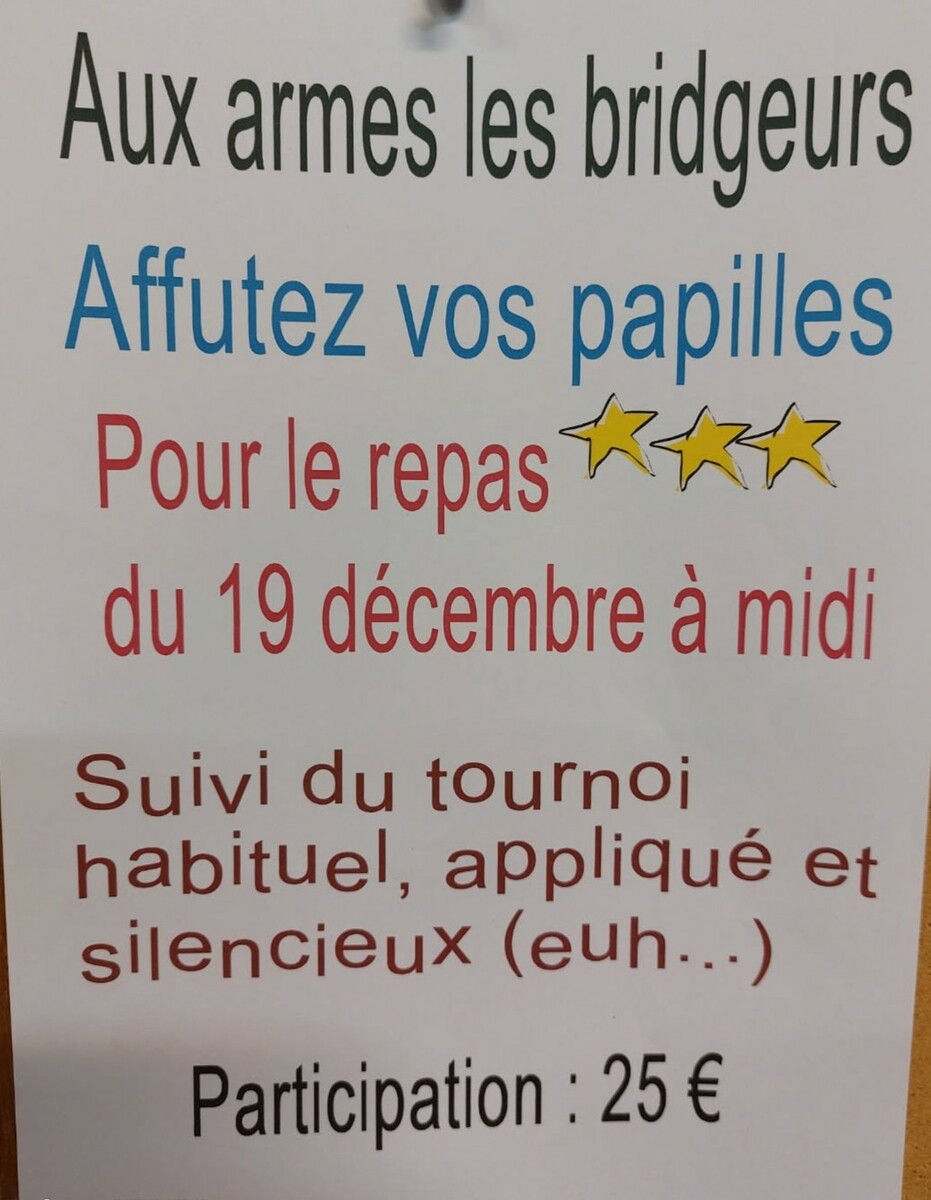 Les inscriptions avant le 9 décembre, le nombre de convives est limité à 40.